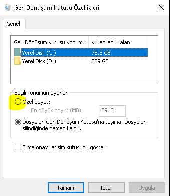 windows 10 da kaybolan geri donusum