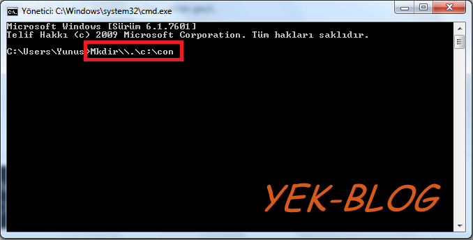 windows un yasakladigi isimleri