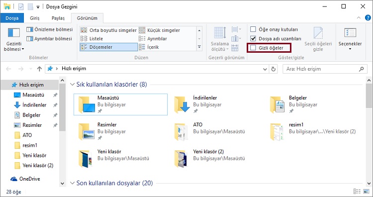 windows 8 gizli klasorleri gosterme gizli klasor olusturma