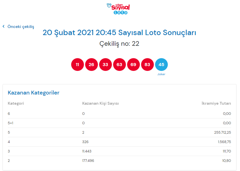 sayisal loto sonuclari 21 mart 2020
