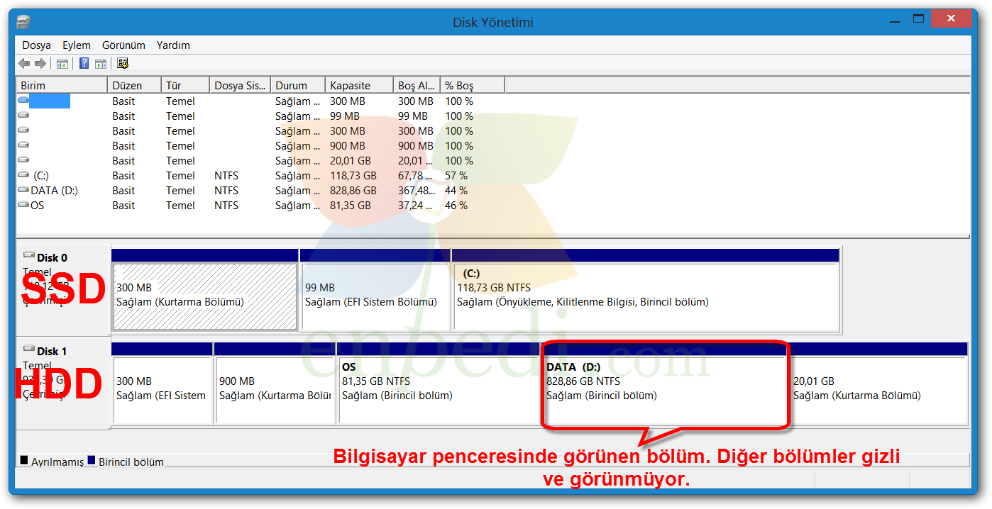 m 2 ssd bilgisayarimda gozukmuyor ama