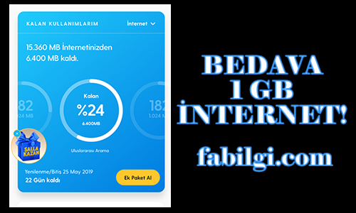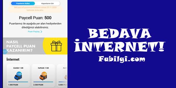 turkcell bedava 1 gb paycell beles