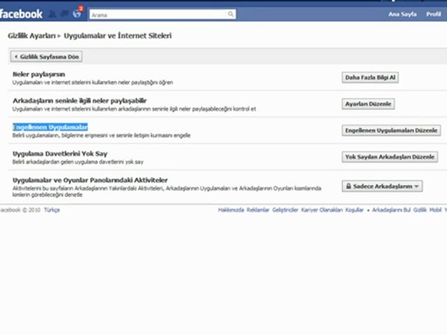 facebook ta engellenen uygulamalarin engelini kaldirma