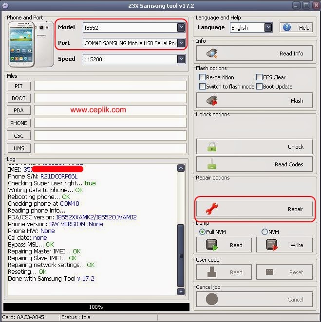 imei atma programi samsung z3x pro