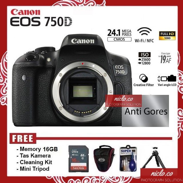 new kamera canon eos 750d wifi body only garansi 1 tahun camera dslr vlog 700d 200d 800d m50