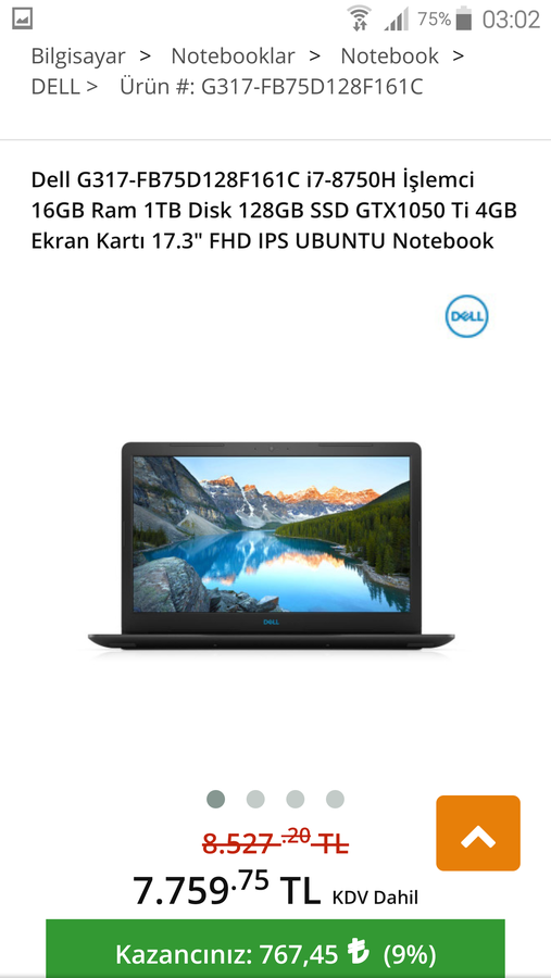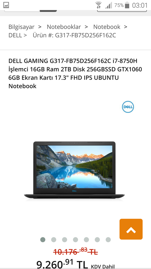 dell gaming g317 fb75d256f162c i7 8750h islemci 16gb ram 2tb disk 256gbssd gtx1060 6gb ekran karti 17 3 fhd ips ubuntu notebook