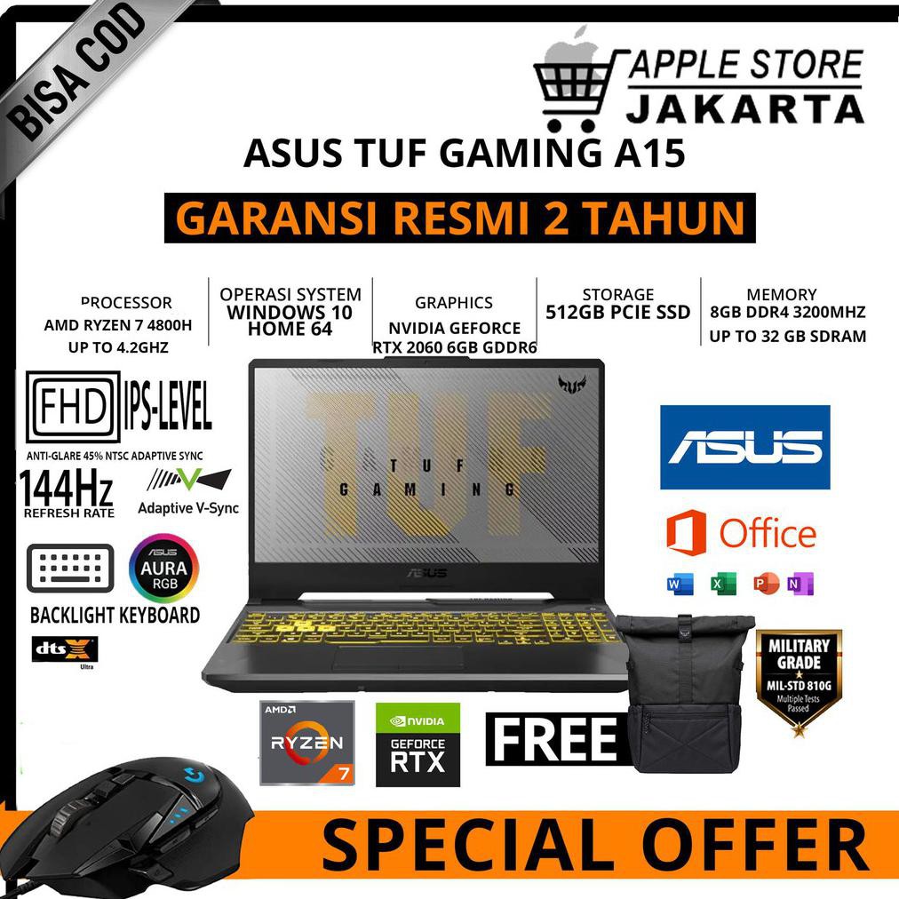 bisa cod asus tuf a15 fx506iv r7r6b6t o ryzen 7 4800h rtx 2060 6gb ram 8gb 512gb 15 6 inch fhd
