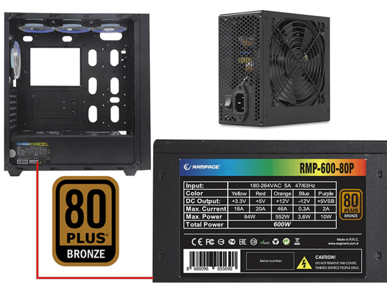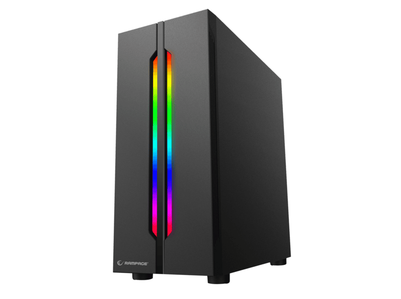 rampage spectra tempered glass 600w 80plus rainbow fan ve ledli gaming bilgisayar kasasi siyah
