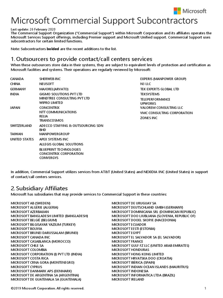 microsoft services supplier list pdf