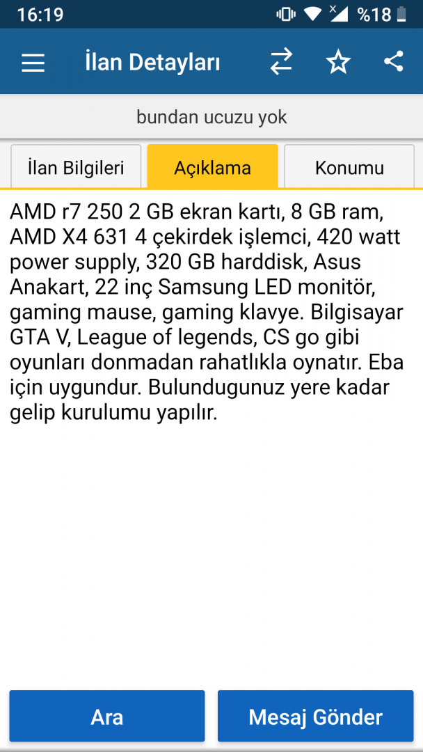 troya a3 amd ryzen 5 1600 gigabyte rx570 gaming mi 8gb 8gb ddr4 480gb ssd gaming bilgisayar