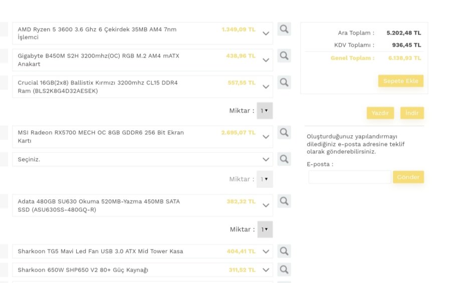butceye gore toplama bilgisayar rehberi