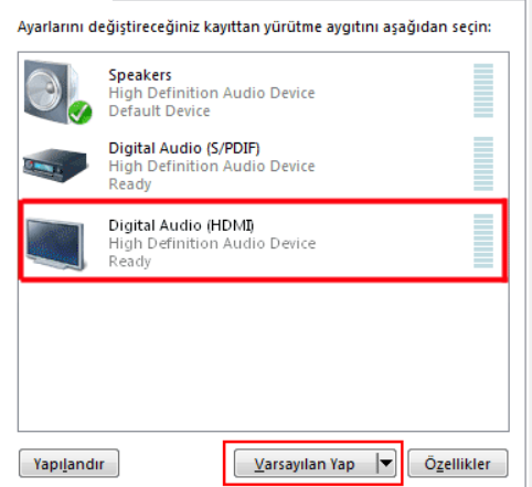 hdmi kablo ses gelmiyor