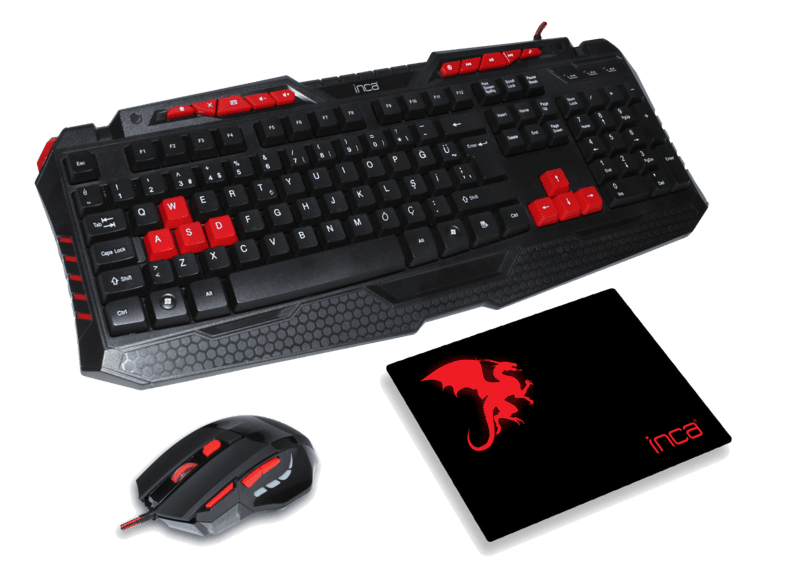 inca ikg 330 kablolu gaming klavye mouse mousepad combo set