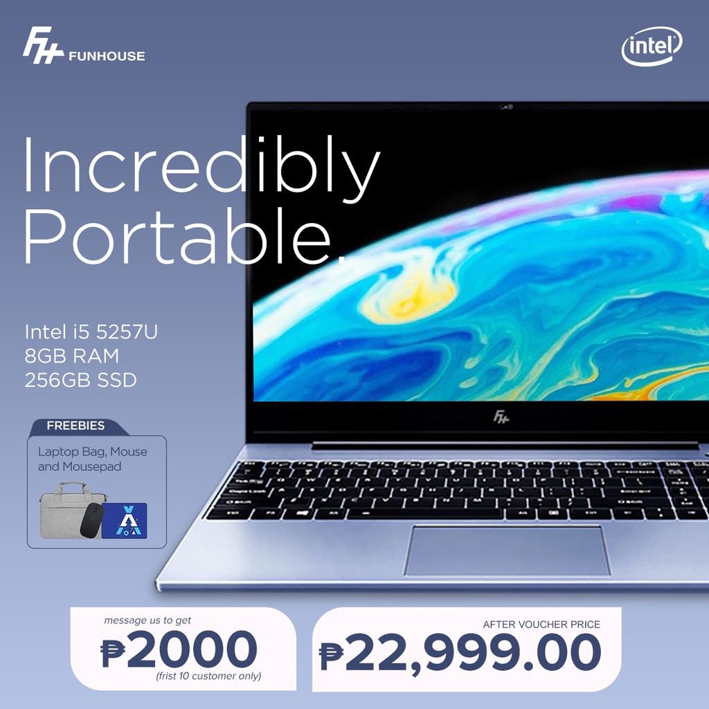funhouse 15 6 inch 1920 1080 intel core i5 5257u 8gb 256gb nvme ssd free laptop bag wireless mouse